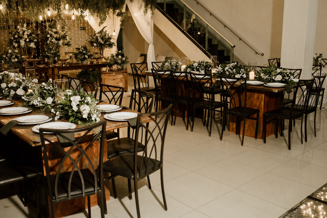 Mezanino Exclusivo: Um mezanino dedicado às mesas dos convidados oferece uma vista privilegiada de todo o evento.
